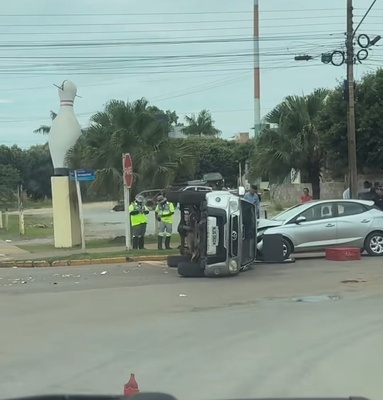 Colisão entre três veículos resulta em capotamento no bairro Pioneiros