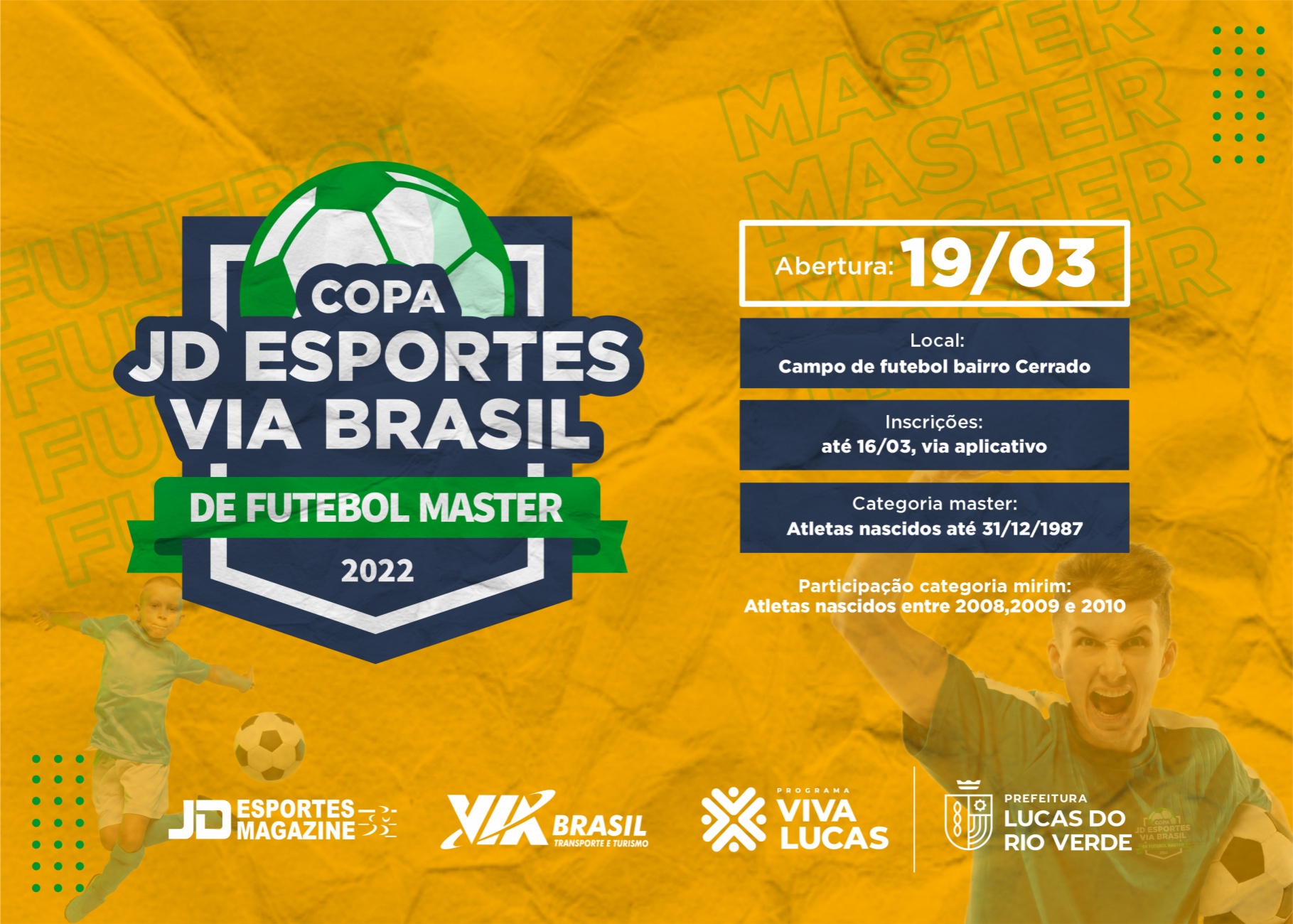 A Prefeitura de Lucas do Rio Verde, por meio da Secretaria de Esporte e Lazer e do Programa Viva Lucas, apresentou os detalhes da primeira edição da Copa JD Esportes / Via Brasil de Futebol Master - 2022. O campeonato será realizado em março e as inscrições podem ser feitas de maneira on-line.