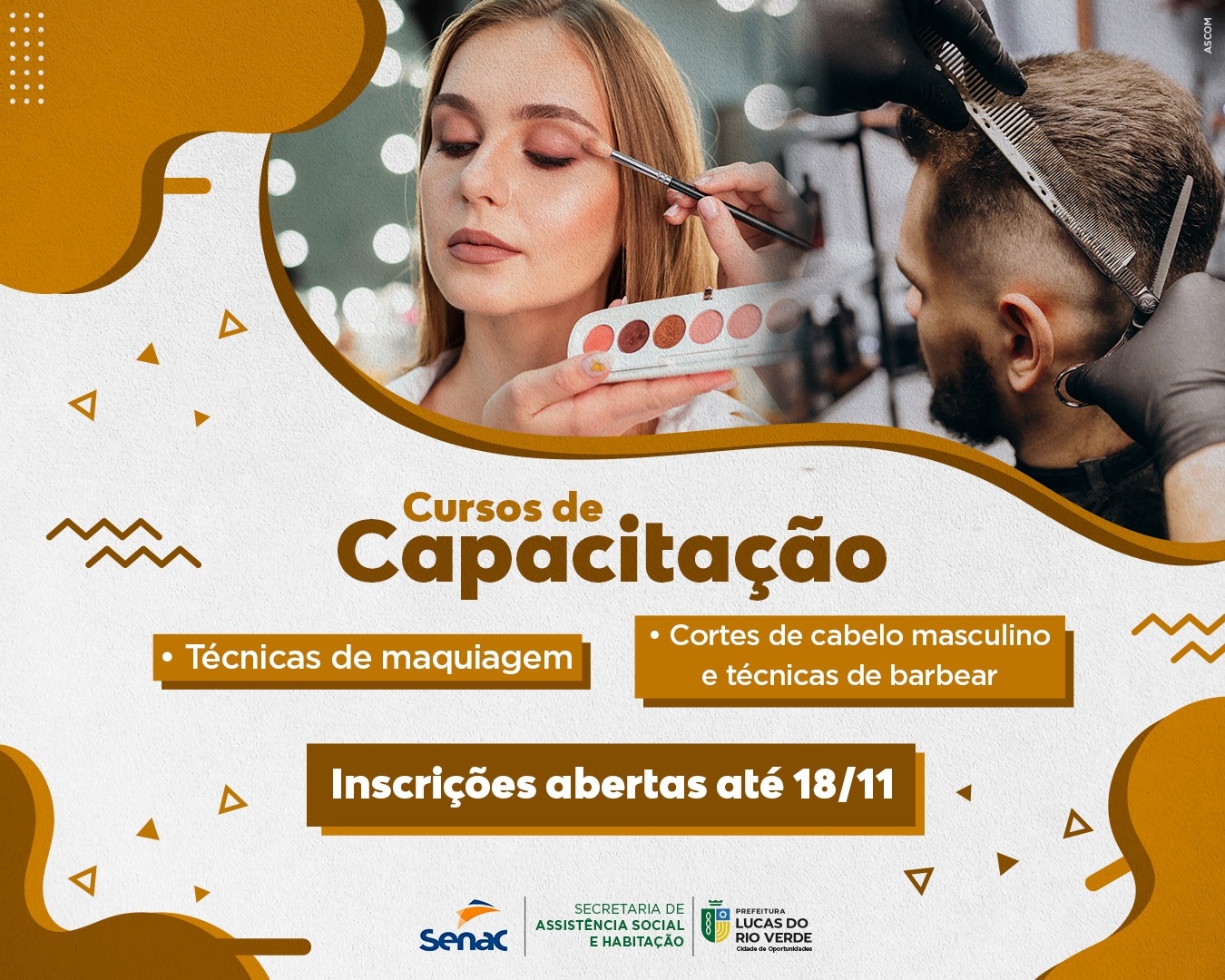 A Secretaria de Assistência Social e Habitação, em parceria com o Senac, oferece, neste mês de novembro, dois cursos gratuitos: técnicas de maquiagem; e corte de cabelo masculino e técnicas de barbear. Para participar, basta se inscrever no Cras de Lucas do Rio Verde até o dia 18 de novembro.