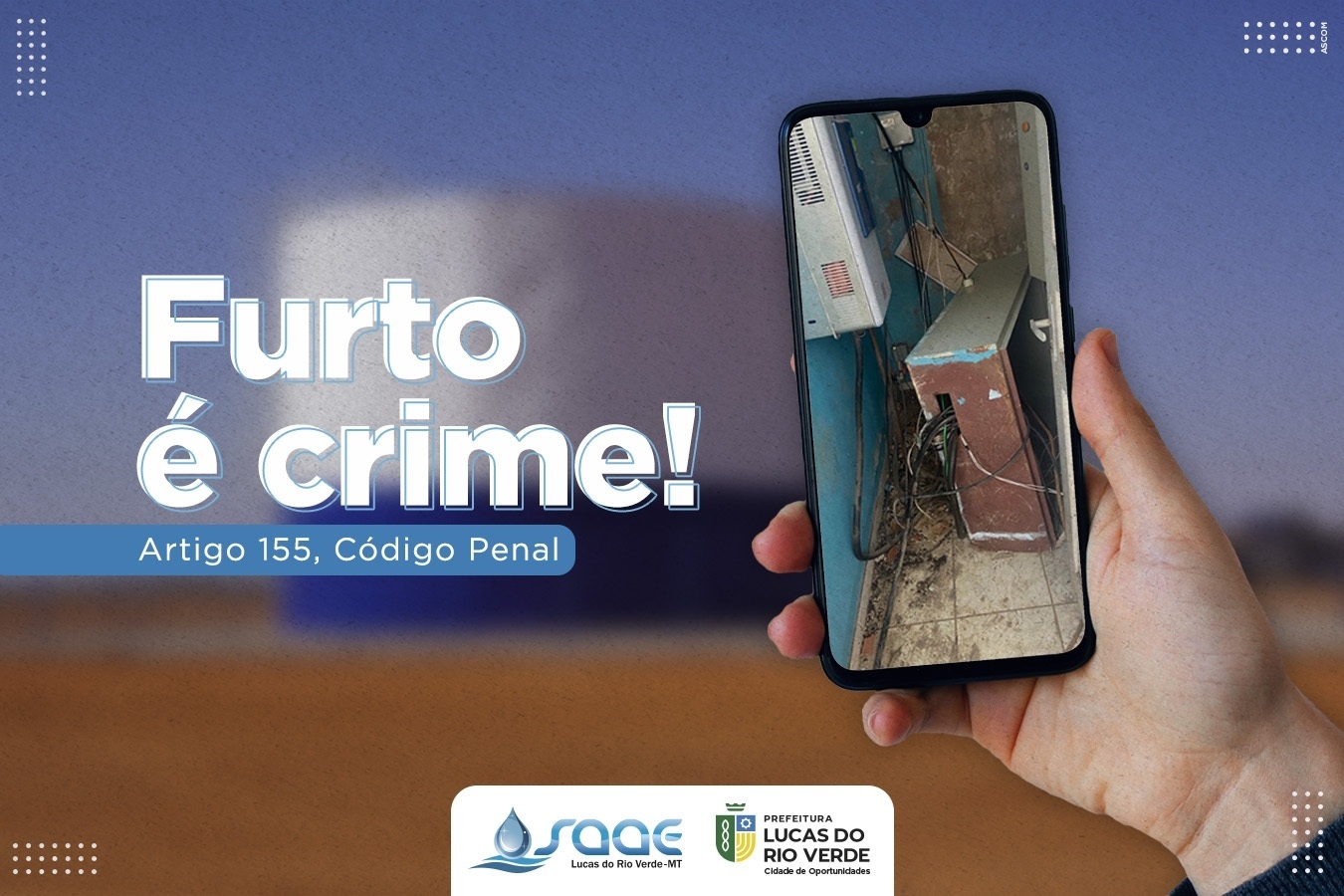 Em casos de furto e vandalismo, além de contatar as autoridades competentes pelo 190, o contribuinte também pode informar o Saae, através do telefone 65 3549-7700 ou via whatsapp, no número 65 9339-1836.