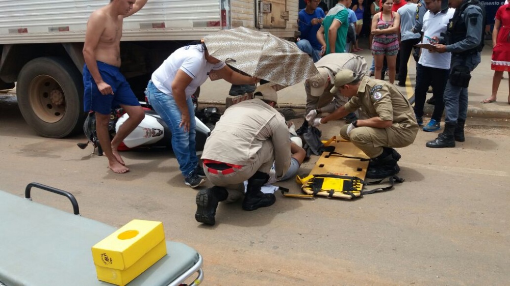 Devido a colisão, o motoqueiro foi jogado para debaixo do caminhão, tendo alguns ferimentos. Por sorte, o motorista do caminhão estava em cima da carroceria e por alguns segundos também não foi atingido pela moto.