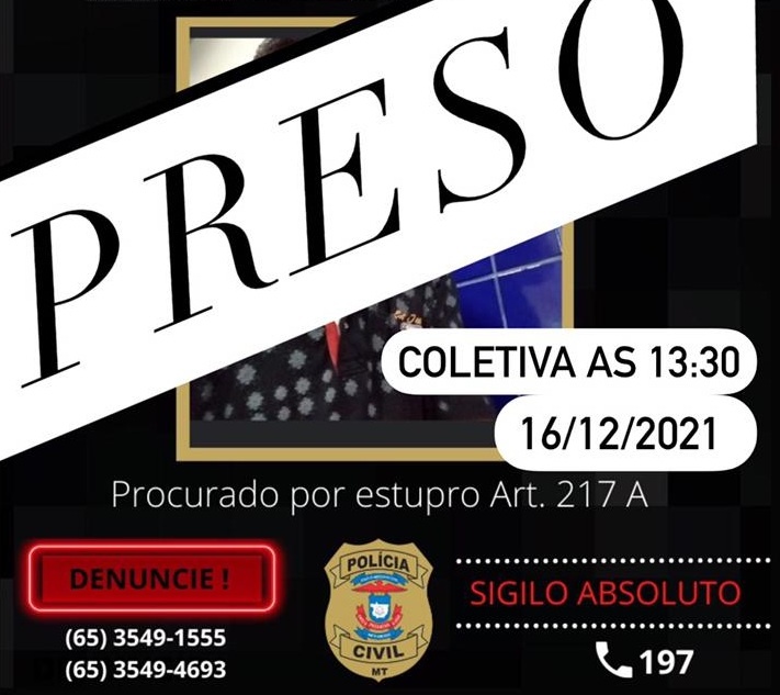 Um homem identificado pelas iniciais V.S.R., que era procurado pela Polícia Civil pelo crime de estupro de vulnerável contra uma menina de 5 anos de idade em Lucas do Rio Verde, foi detido nesta quinta-feira (16) em Goiás.