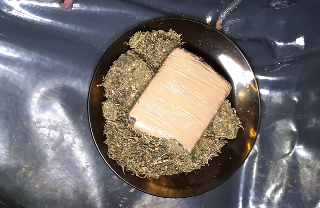 Nas buscas um dos dois jovens, de 16 anos, foi localizado e tinha em mãos um prato de vidro com 336 gramas de maconha. O menor foi apreendido com a maconha, R$ 50,00 em dinheiro e um aparelho celular.