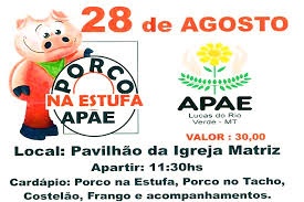 A escola Especial Renascer, mantida pela Associação de Pais e Amigos dos Excepcionais – APAE de Lucas do Rio Verde, realiza no próximo domingo, dia 28, mais uma edição do tradicional ‘Porco na Estufa’.