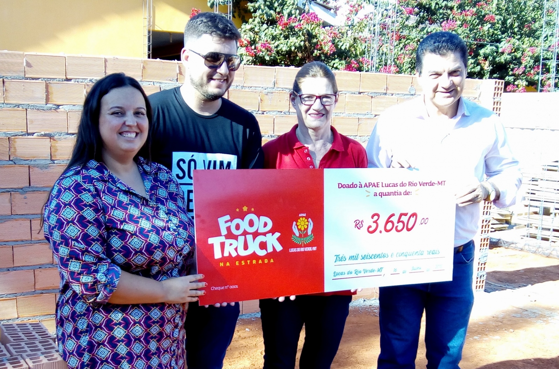O valor de 3650,00 foi doado para a Apae de Lucas do Rio Verde pela organização fo Festival Foof Truck que passou pela cidade no último final de semana. Esse é o montante referente a 10% do comercializado durante os quatro dias em que o evento esteve em Lucas.