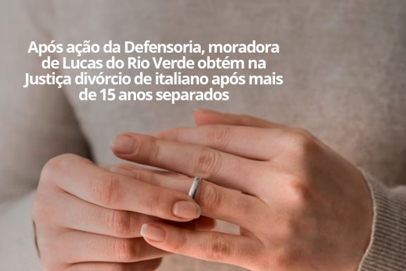 Após atuação da Defensoria Pública de Mato Grosso, E.G.C., 40 anos, moradora de Lucas do Rio Verde, conseguiu na Justiça, na última sexta-feira (15), a homologação do divórcio, de forma consensual, de T.C., 55 anos, italiano que atualmente reside em Milão. Eles estavam separados há mais de 15 anos.