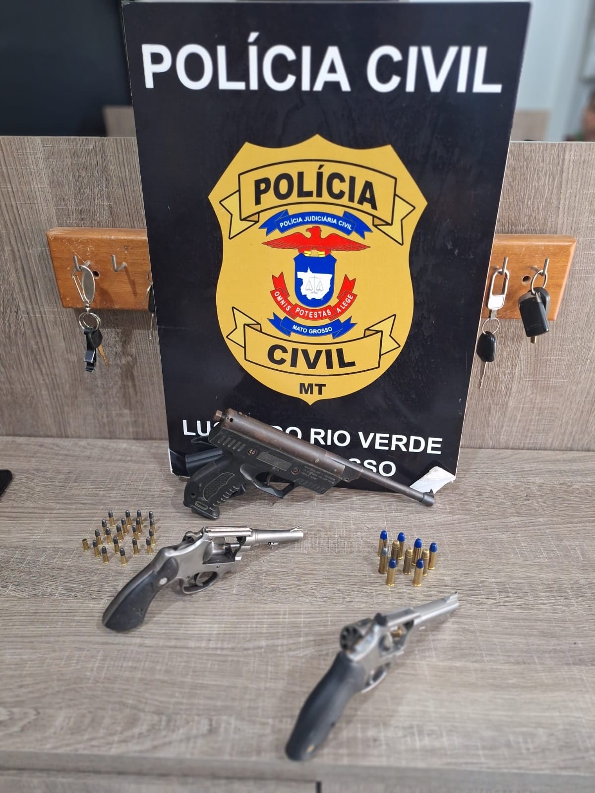 Foram apreendidos dois revólveres, sendo um calibre 38 e um calibre 32, além de uma arma que pode ser considerada artesanal, mas com provável poder destrutivo. As investigações podem determinar se o homem possuía as armas para uma posterior comercialização.