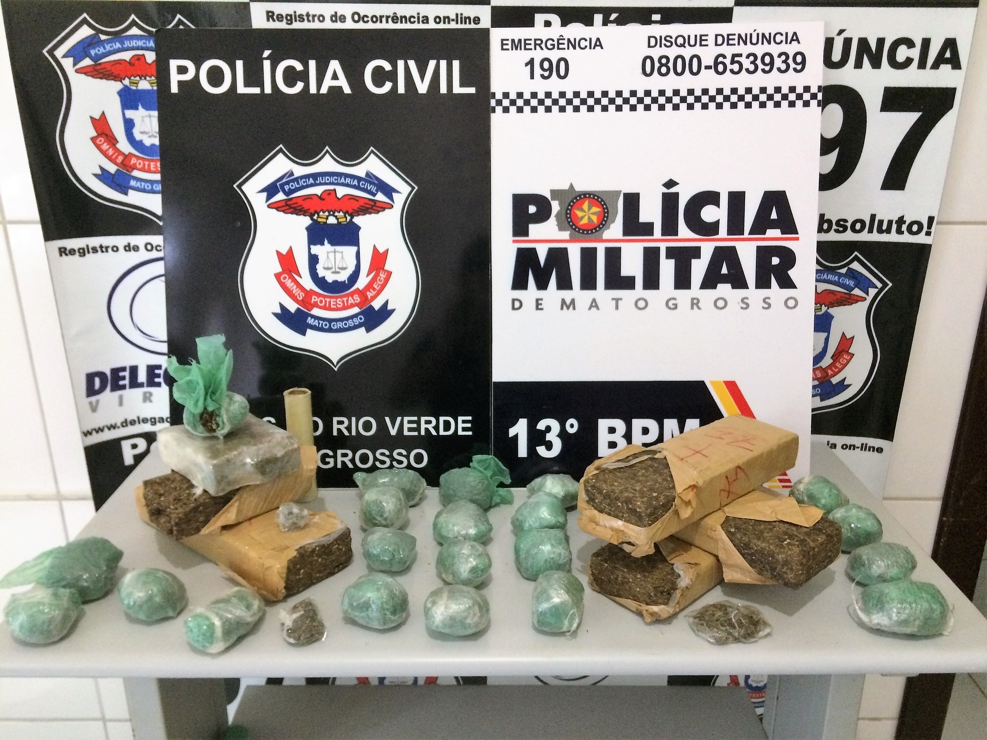 A droga estava dividida em tabletes e em porções embaladas. Todo o material foi apreendido e encaminhado à delegacia de Polícia Civil para os procedimentos necessários.
