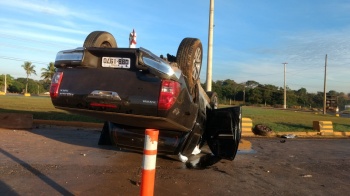 Uma briga de casal, quase terminou em tragédia, na noite deste domingo, em Lucas do Rio Verde. O casal estava em uma lanchonete no centro da cidade quando deu início a uma discussão. A polícia militar foi acionada e ao chegar ao local, o homem embarcou em uma camionete Hilux e saiu em alta velocidade. Os policiais passaram a fazer o acompanhamento, por várias ruas da cidade. Ao pegar a MT-449, com destino a Tapurah, o condutor da camionete perdeu o controle da direção, subiu na rotatória, que dá acesso ao anel viário e capotou.