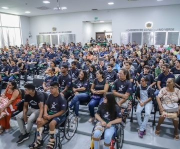 A cerimônia lotou o Auditório dos Pioneiros, na Prefeitura de Lucas do Rio Verde, na tarde desta quarta-feira (09), e contou com a presença do prefeito Miguel Vaz, autoridades, além dos 133 atletas contemplados no projeto, pais e familiares.