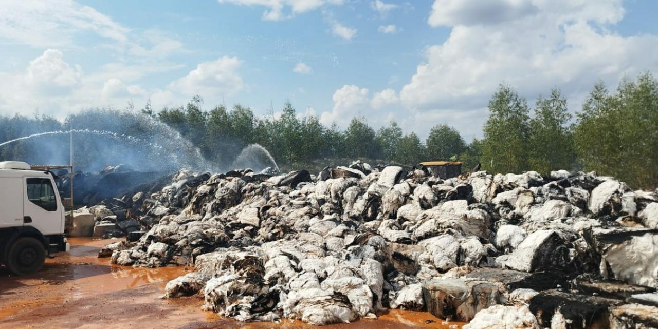 Bombeiros combatem incêndio em 5000 rolos de algodão em Tapurah