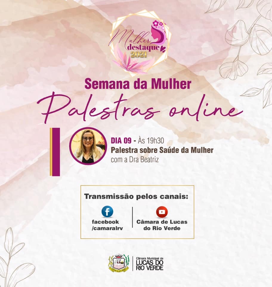Hoje começa o Ciclo de palestras on-line ofertado pela Câmara de Vereadores a todas as mulheres em homenagem ao mês da Mulher.