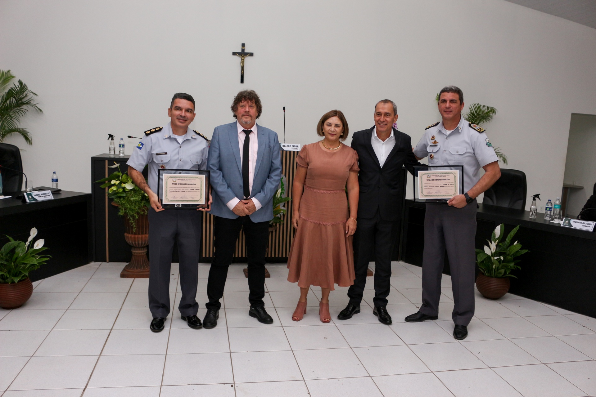 Outra personalidade muito importante que esteve presente na Solenidade e recebeu o Título de Cidadão Honorário foi o atual comandante geral da Polícia Militar de Mato Grosso, coronel Alexandre Mendes.