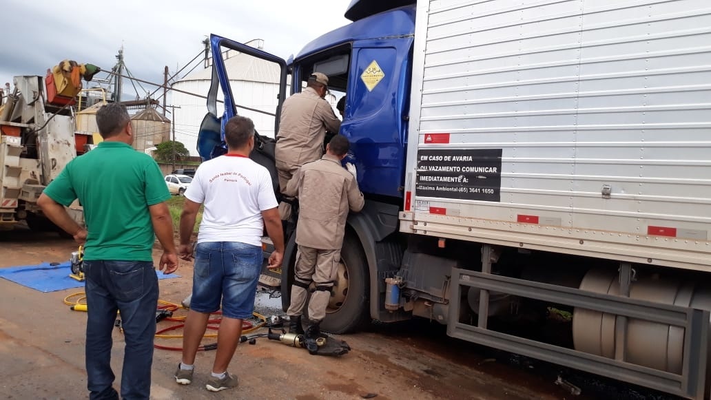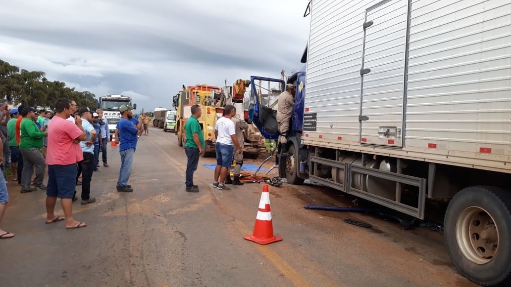 Caminhão bate em carreta na BR-163 em Lucas do Rio Verde e dois ficam feridos