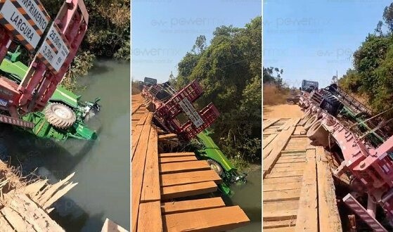 O acidente foi registrado na manhã desta quarta-feira (10), quando um caminhão-prancha que transportava uma colheitadeira tombou ao atravessar uma ponte que liga Nova Mutum a Lucas do Rio Verde, na zona rural do município.