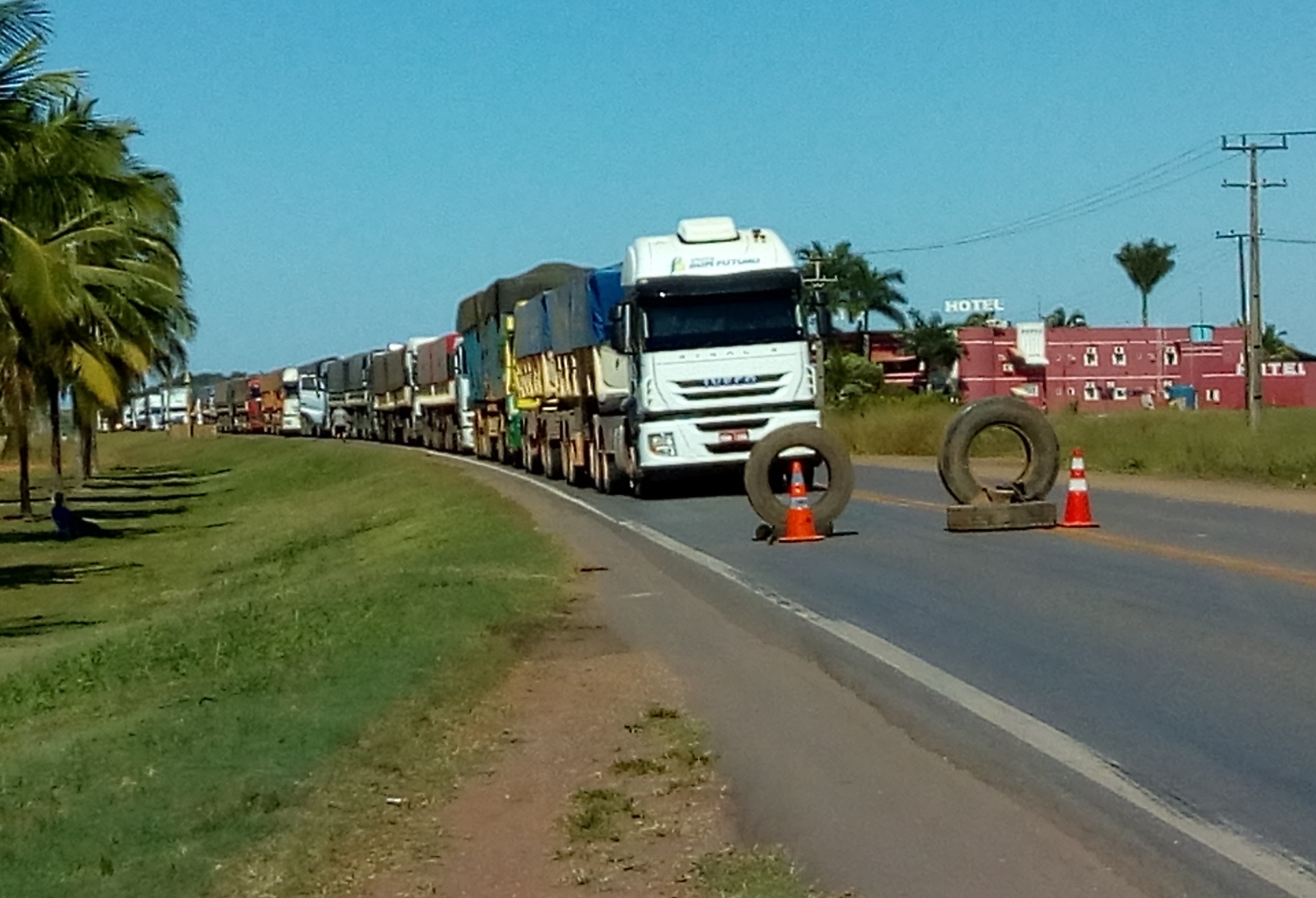 Caminhoneiros bloqueiam BR-163 em Lucas do Rio Verde