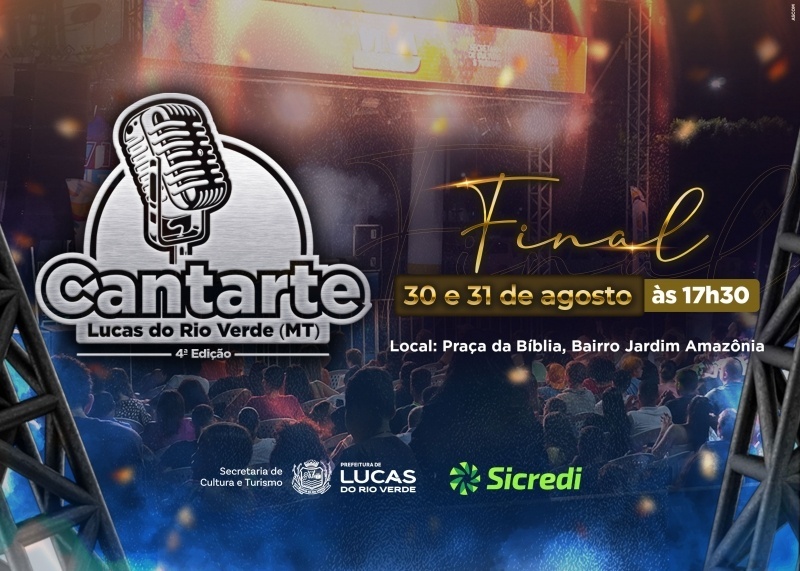Nos dias 30 e 31 de agosto, sábado e domingo, a partir das 17h30, na Concha Acústica da Praça da Bíblia, Lucas do Rio Verde viverá a emoção da final do Cantarte 2025, com apresentações de 36 artistas e distribuição de mais de R$ 32 mil em prêmios.