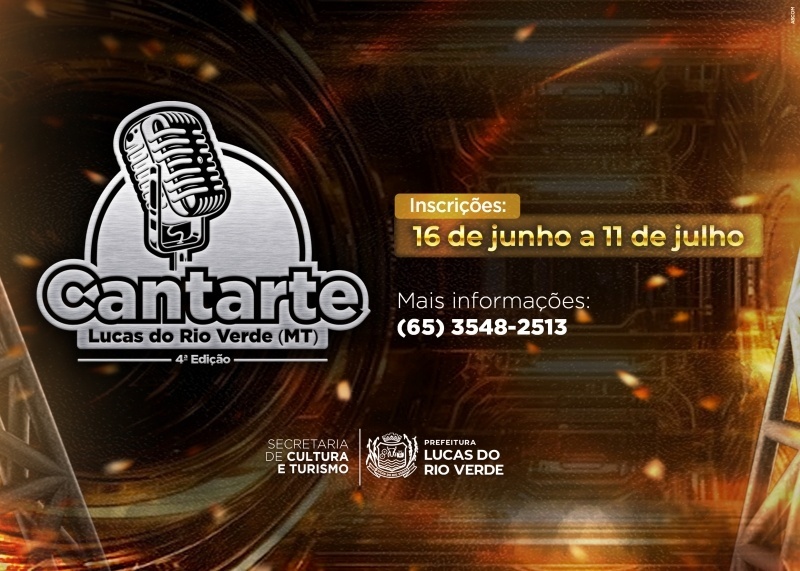 Estão abertas até o dia 11 de julho as inscrições para o Cantarte 2025, concurso de canto promovido pela Prefeitura de Lucas do Rio Verde, por meio da Secretaria de Cultura e Turismo, com patrocínio do Sicredi. A iniciativa tem como objetivo revelar, valorizar e premiar os talentos musicais da cidade, com premiações que variam entre R$ 700 e R$ 3.500.