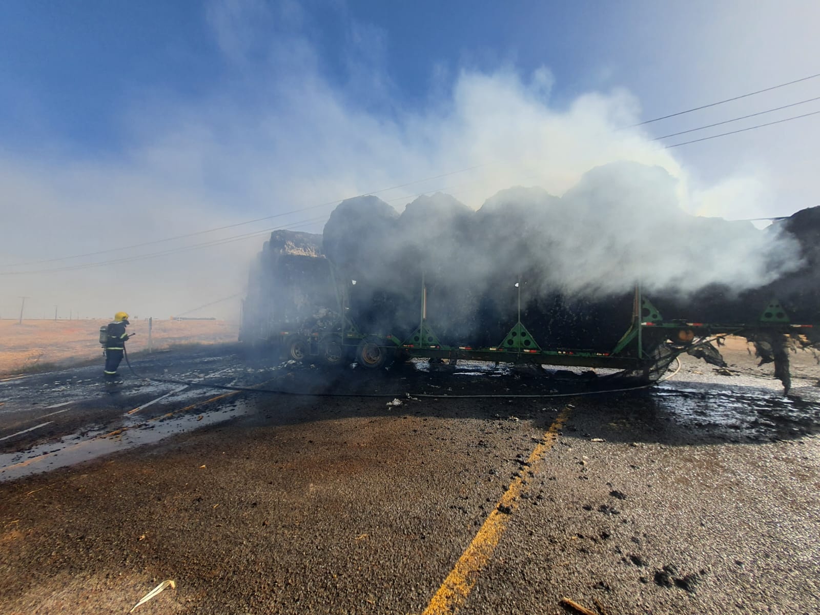 As informações preliminares eram de que apenas o cavalinho com a carga de algodão estava pegando fogo, mas que o motorista já havia conseguido desengatar a carreta.