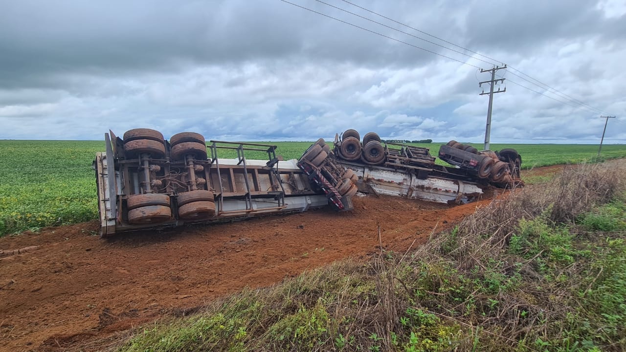 Carreta tomba na MT-485 próximo a Comunidade do Morocó