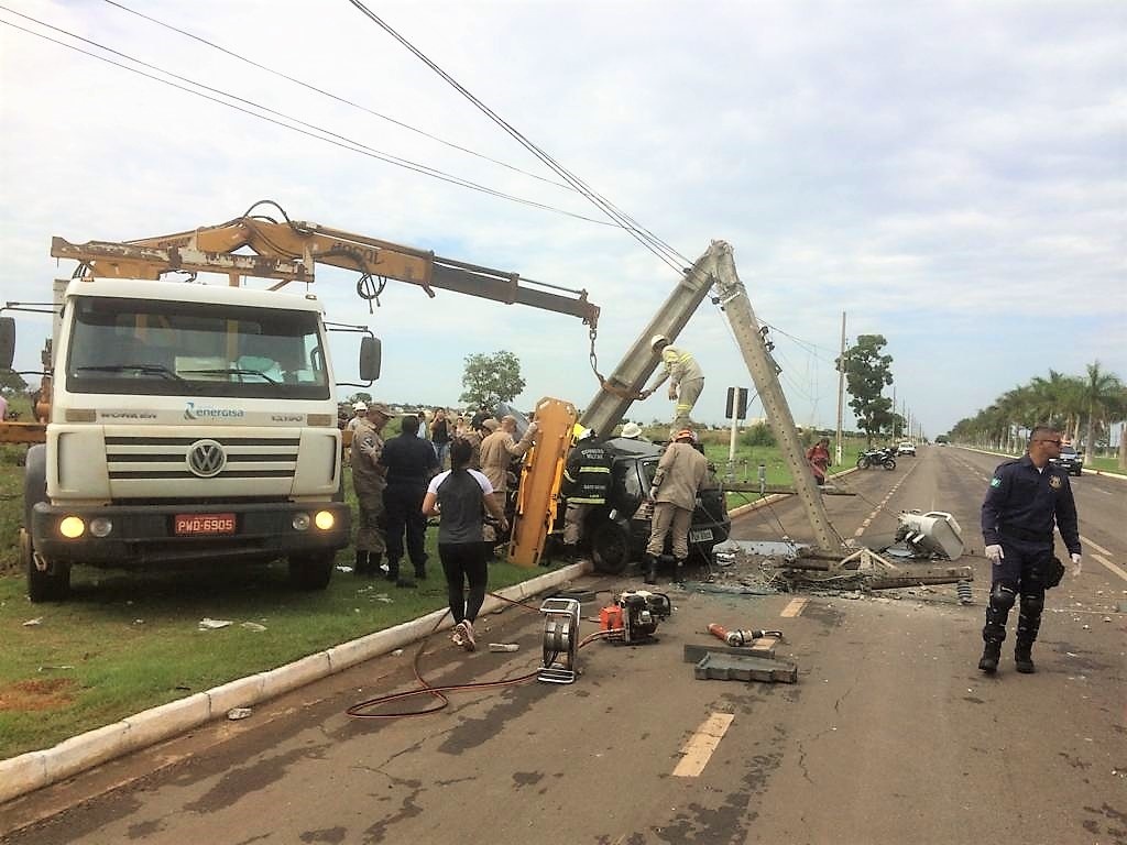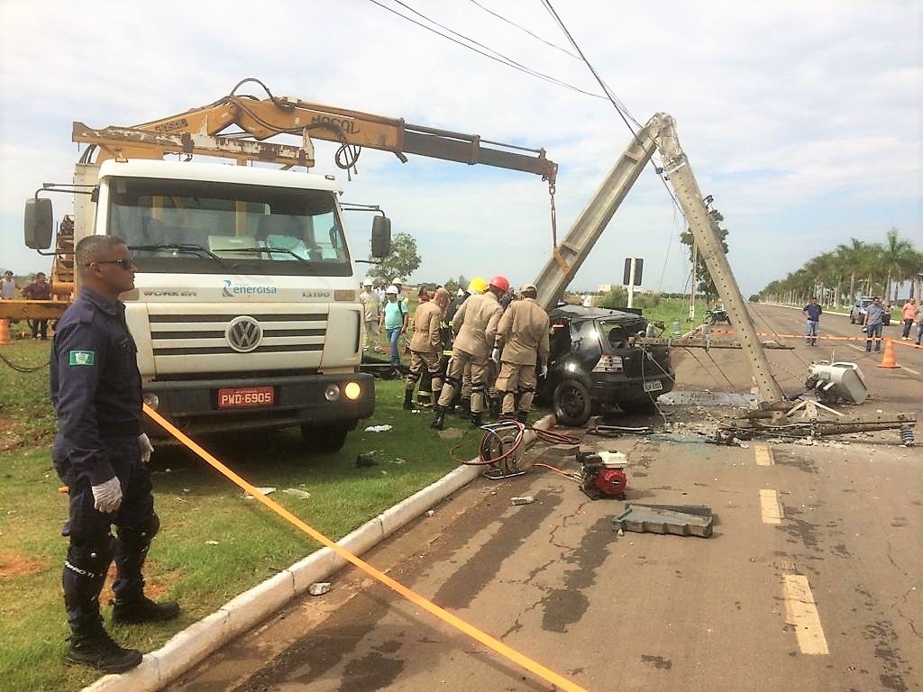 O motorista e uma passageira ficaram presos às ferragens e o Corpo de Bombeiros trabalhou por mais de duas horas, para resgatá-las. Funcionários da concessionária Energisa, fizeram o desligamento da energia para o trabalho dos bombeiros.