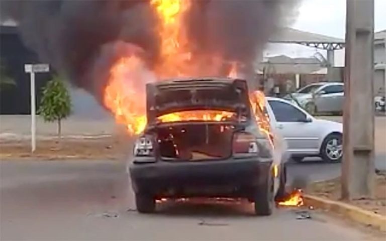 Um Volkswagen Logus pegou fogo, na manhã desta quinta-feira, na avenida Blumenau Sul, no bairro Rota do Sol, em Sorriso. No carro haviam duas pessoas, que conseguiram sair antes que as chamas se alastrassem. Ninguém ficou ferido. Os bombeiros foram acionados e utilizaram Caminhão Auto Bomba Tanque (ABT) para apagar as chamas.