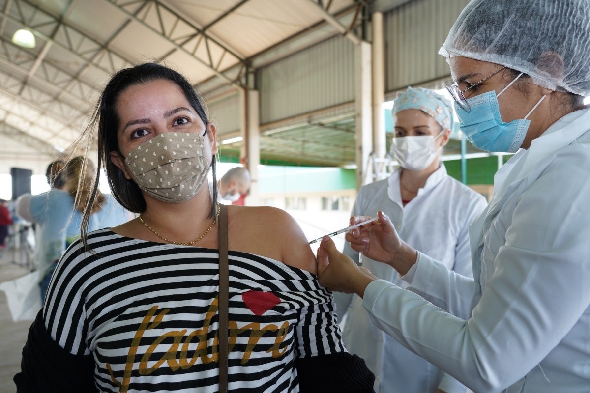 A Prefeitura de Lucas do Rio Verde, por meio da Secretaria Municipal de Saúde, realizou na manhã desta quarta-feira (28) mais uma etapa da vacinação contra a Covid-19. Receberam a primeira dose dos imunizantes pessoas com 35 anos completos ou mais. O local da aplicação, assim como nas demais etapas, foi o Parque de Exposições (pavilhão da Expolucas), no formato drive-thru e com acesso para pedestres.