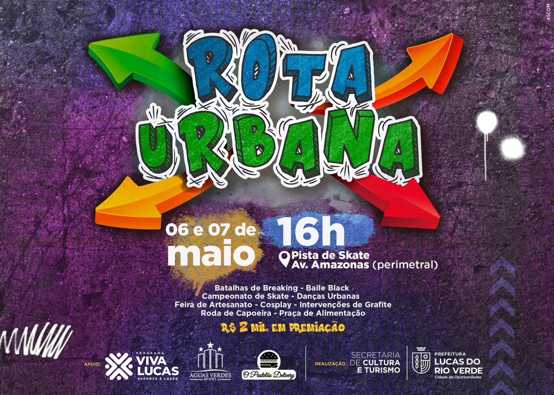 A Prefeitura de Lucas do Rio Verde, por meio da Secretaria de Cultura e Turismo, convida a comunidade para prestigiar mais uma edição do Circuito Rota Urbana. A atividade, que visa fortalecer o movimento cultural do hip-hop, será realizada nos dias 06 e 07 de maio, a partir das 16h, na pista de skate da Perimetral, na Avenida Amazonas.