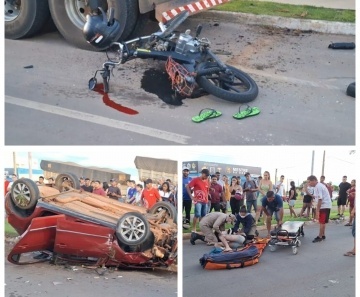 Colisão entre carro, moto e caminhão resulta na morte de jovem em Lucas do Rio Verde