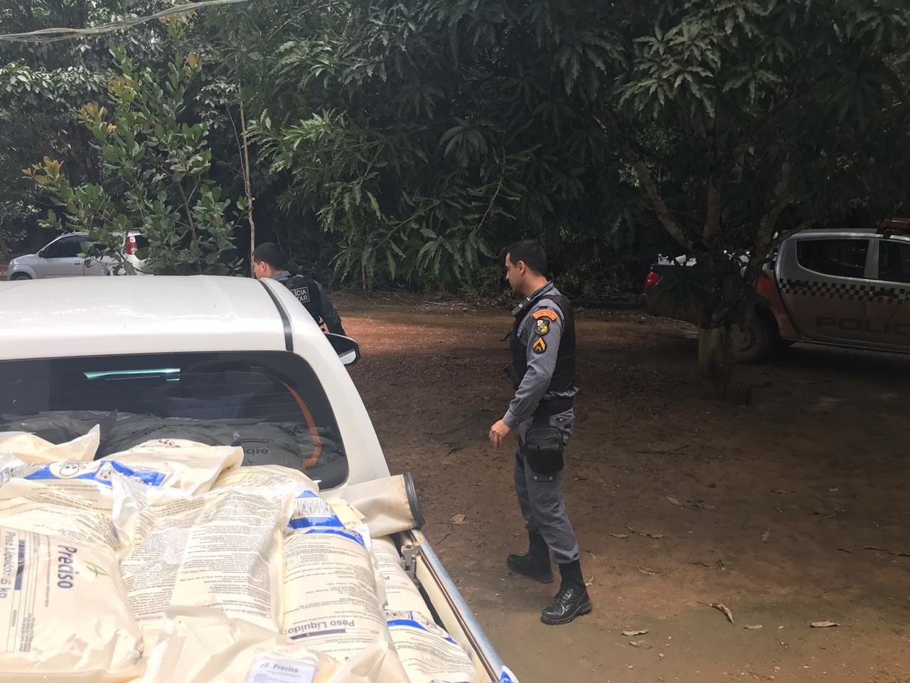 Segundo o Ten PM Peixoto, que deu apoio a operação junto a outros militares de Lucas do Rio Verde, no local quatro veículos sendo uma Toyota Hilux e uma caminhonete S-10, dois rádios comunicadores, além de duas espingardas, foram localizados. Os veículos foram utilizados para carregar os agrotóxicos. Segundo a polícia, possivelmente os agrotóxicos também devem pertencer a outras propriedades que foram assaltadas, considerando a quantidade recuperada.