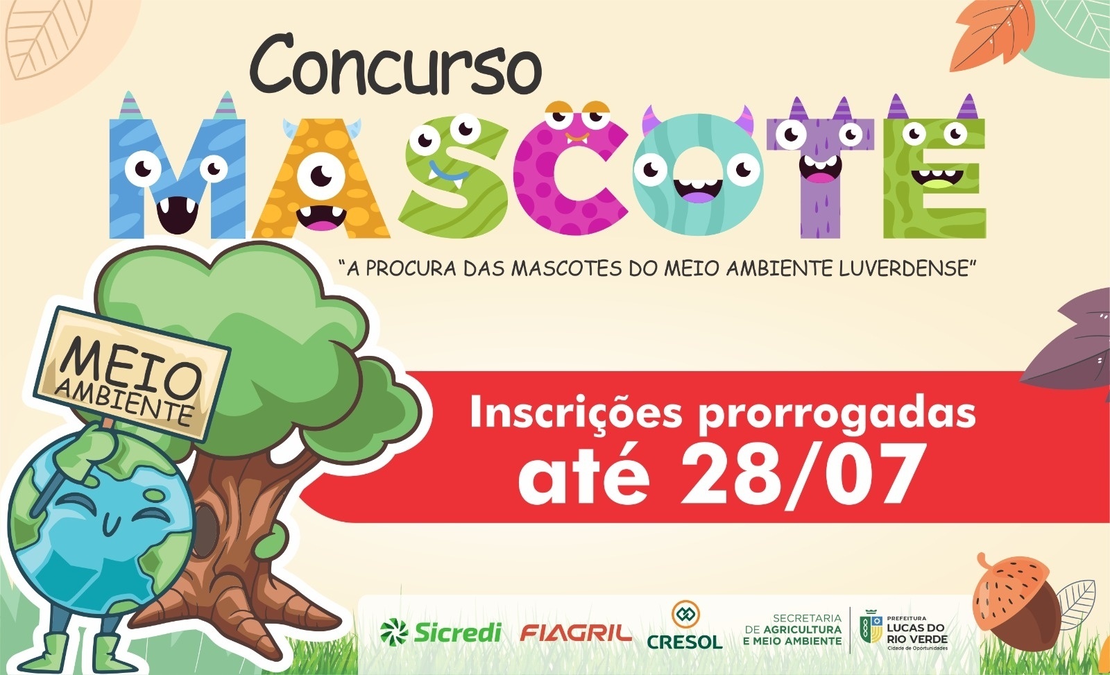 O Concurso para a escolha do Mascote do Meio Ambiente foi prorrogado para o dia 28 de julho, conforme a Secretaria de Agricultura e Meio Ambiente. De acordo com o edital 001/2023, lançado em 12 de junho, serão escolhidos 4 (quatro) mascotes, através de ilustração artística.