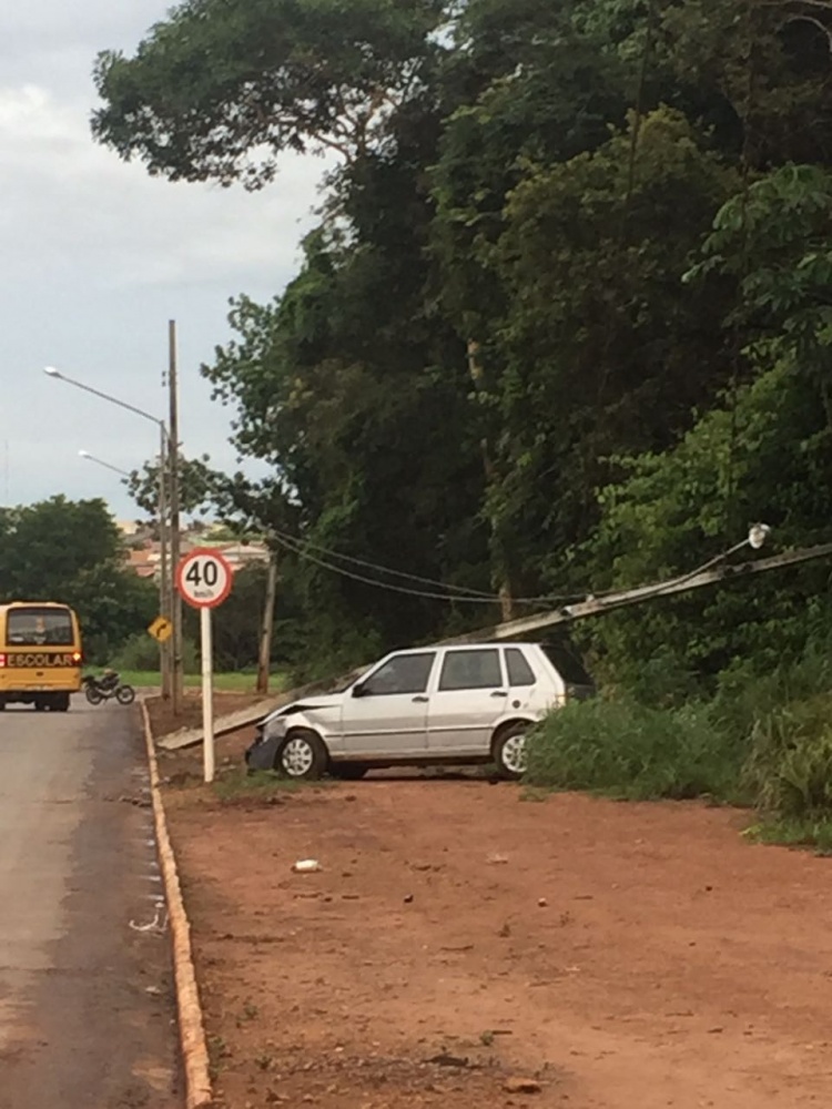 Condutor derruba poste e sai ileso de acidente