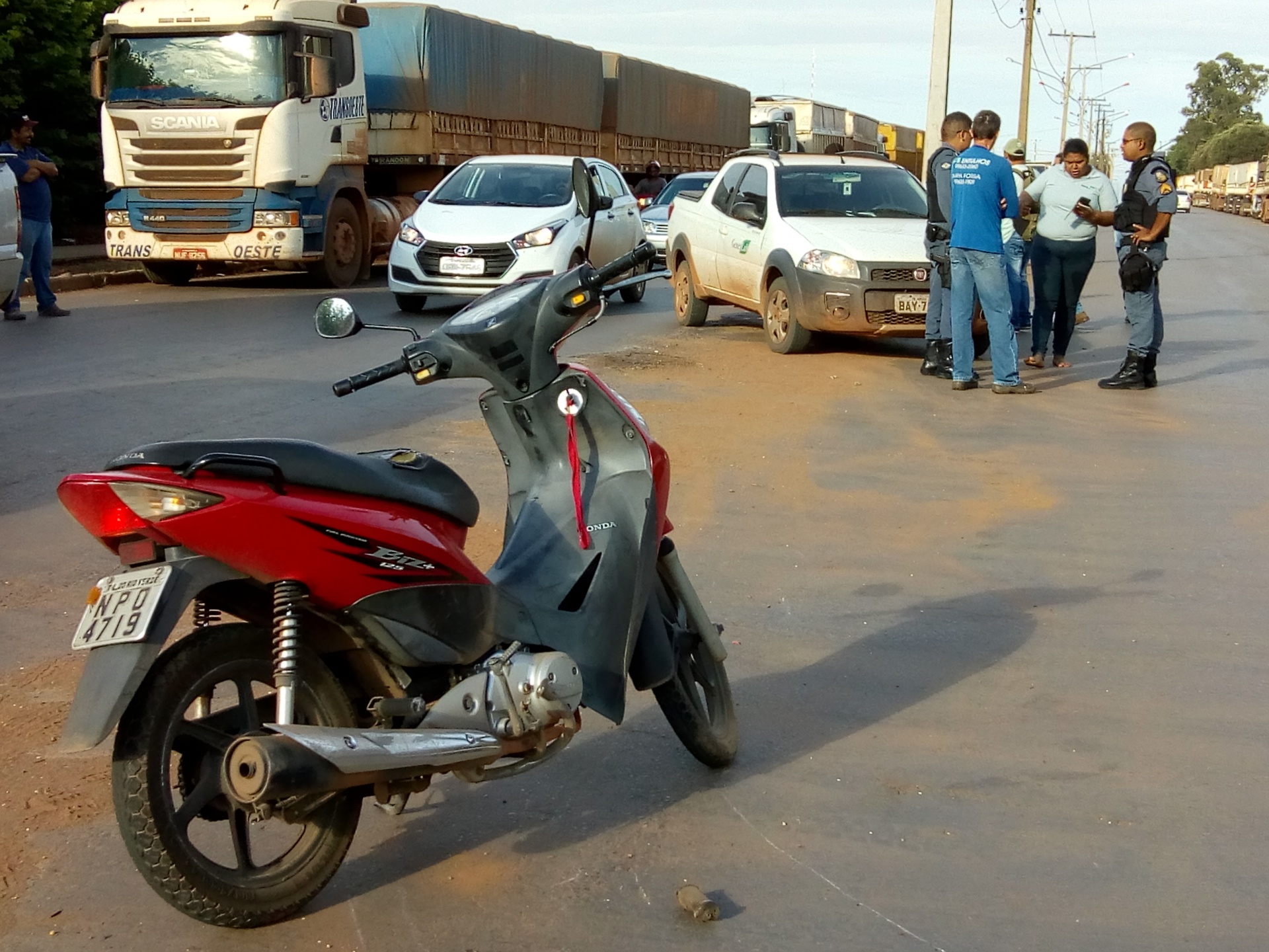 De acordo com informações colhidas no local, uma pick up Strada, de cor branca, teria colidido com a condutora de uma moto Honda Bis, de cor vermelha, em um acesso de retorno na avenida.