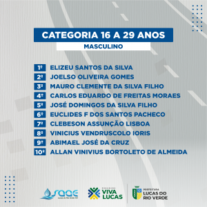 Atletas que participaram das provas de corrida de rua em Lucas do Rio Verde em 2021 agora podem conferir o ranking, divulgado pela Secretaria de Esporte e Lazer. As categorias foram divididas entre masculino e feminino e nas faixas etárias de 16 a 29 anos, 30 a 39 anos, 40 a 49 anos, 50 a 59 anos e 60 anos ou mais.