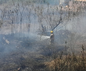 Foram acionadas três equipes do Corpo de Bombeiros, que trabalharam durante 2 horas para conter as chamas que tomaram conta da área afetada, chegando próximo das casas.