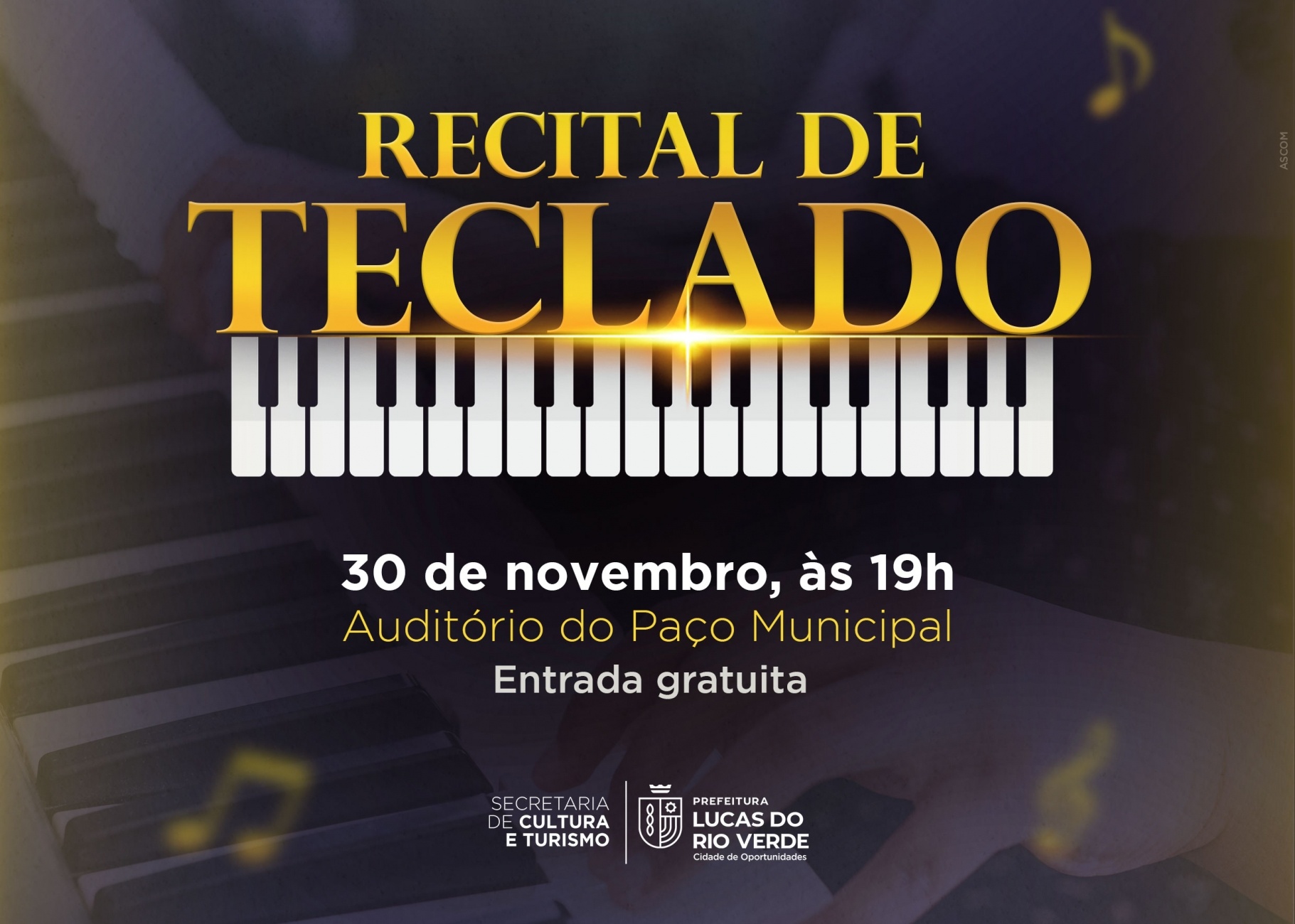 A Prefeitura de Lucas do Rio Verde convida a população para prestigiar o Recital de Teclado. A apresentação musical é fruto do trabalho desenvolvido durante o ano com os alunos da oficina cultural de teclado da Secretaria de Cultura e Turismo.