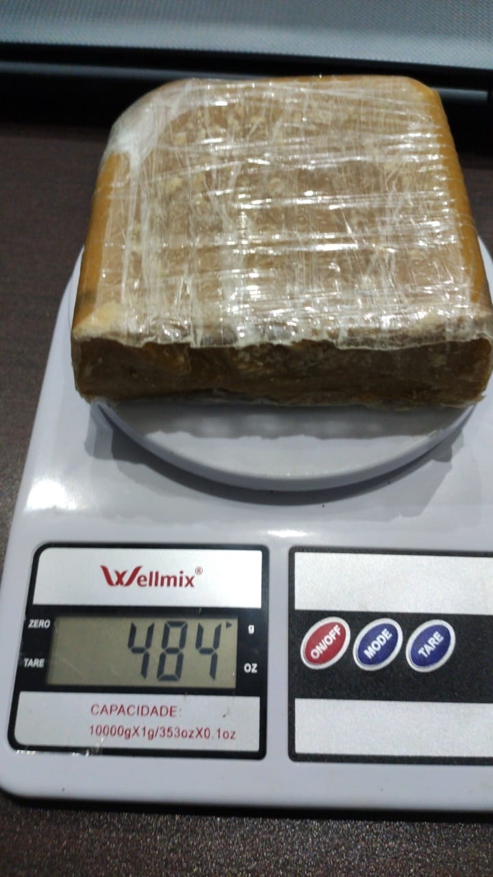 Foram detidos os suspeitos de 23 e 25 anos de idade e com eles apreendidos: quatro tabletes de maconha, com peso aproximado de 4,580 kg; dois tabletes de maconha, com peso aproximado de 1,840 kg; uma trouxa pequena com maconha tipo skank; um tijolo de pasta base pesando aproximadamente 484 gramas; uma balança de precisão; um veículo Chevrolet Onix; R$ 900,00 em dinheiro, e dois celulares;