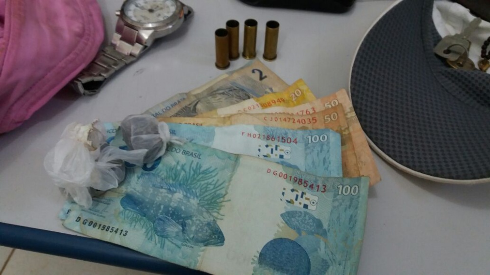 Com o segundo suspeito, foram encontrados R$324,00 em moeda corrente e duas porções de substancia análoga a maconha. Esse último, comentou que uma terceira pessoa foi quem efetuou os disparos de arma de fogo, porém, teria se evadido do local antes da chegada da PM. A arma de fogo não foi localizada.