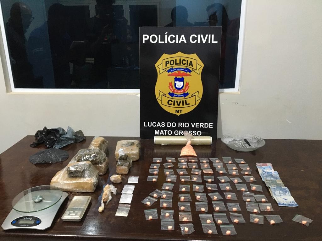De posse das informações, investigadores da Polícia Civil iniciaram os trabalhos de aprofundamentos das informações e eles conseguiram encontrar o imóvel utilizado como ‘boca de fumo’, e lá encontraram uma grande quantidade de drogas, sendo: 120 comprimidos de ecstasy, porções de cocaína, cerca de 2 quilos de maconha, além de balança de precisão e determinada quantidade em dinheiro.