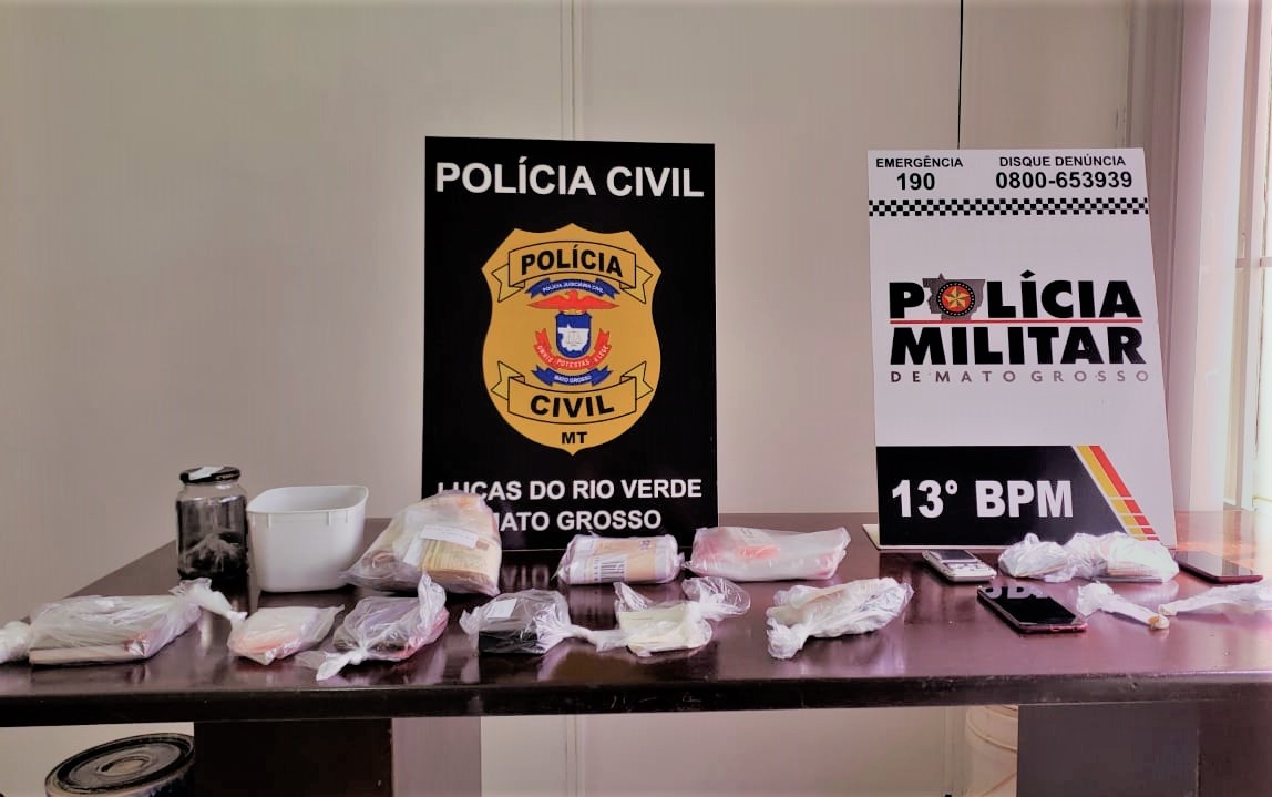 Em um trabalho integrado das Polícias Civil e Militar de Lucas do Rio Verde, que iniciou na terça-feira (09), culminou com a condução de seis pessoas e grande quantidade de drogas (entre maconha, pasta base e cocaína), e na sequência mais 4 pessoas (dois homens e duas mulheres), também detidos por fomento do tráfico de drogas no município.