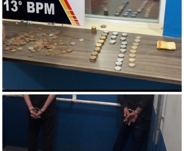 Os militares fizeram a abordagem nos suspeitos, e ao realizarem uma checagem nas câmeras de segurança, confirmaram que a dupla cometeu o roubo.