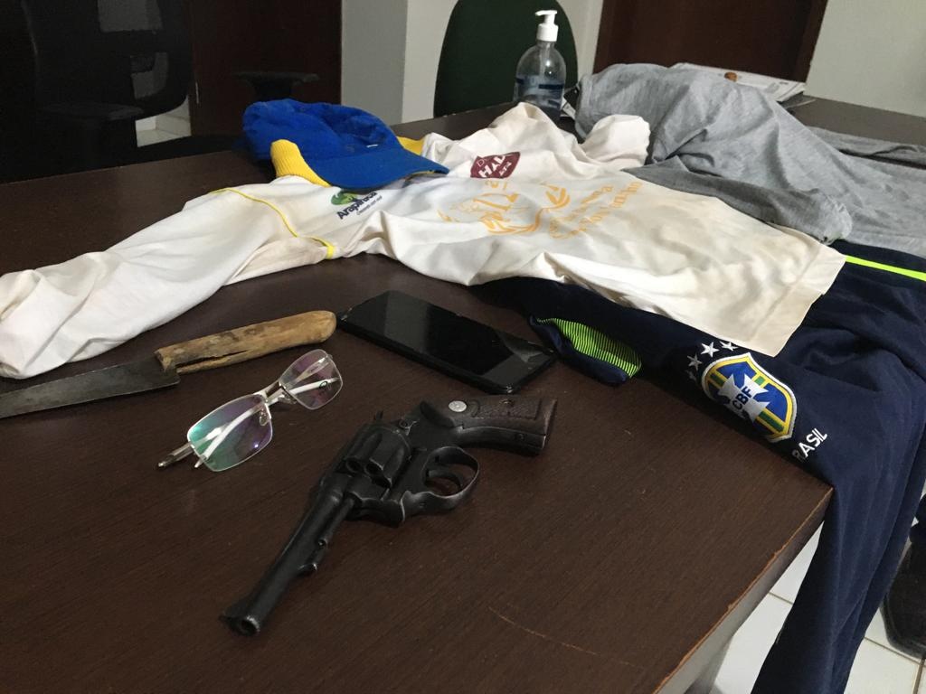 Com os suspeitos foi apreendido um revólver calibre 32 municiado, um par de óculos (produto de roubo), além de dois celulares e dinheiro trocado. Eles foram encaminhados para a Delegacia de Polícia para os procedimentos cabíveis.