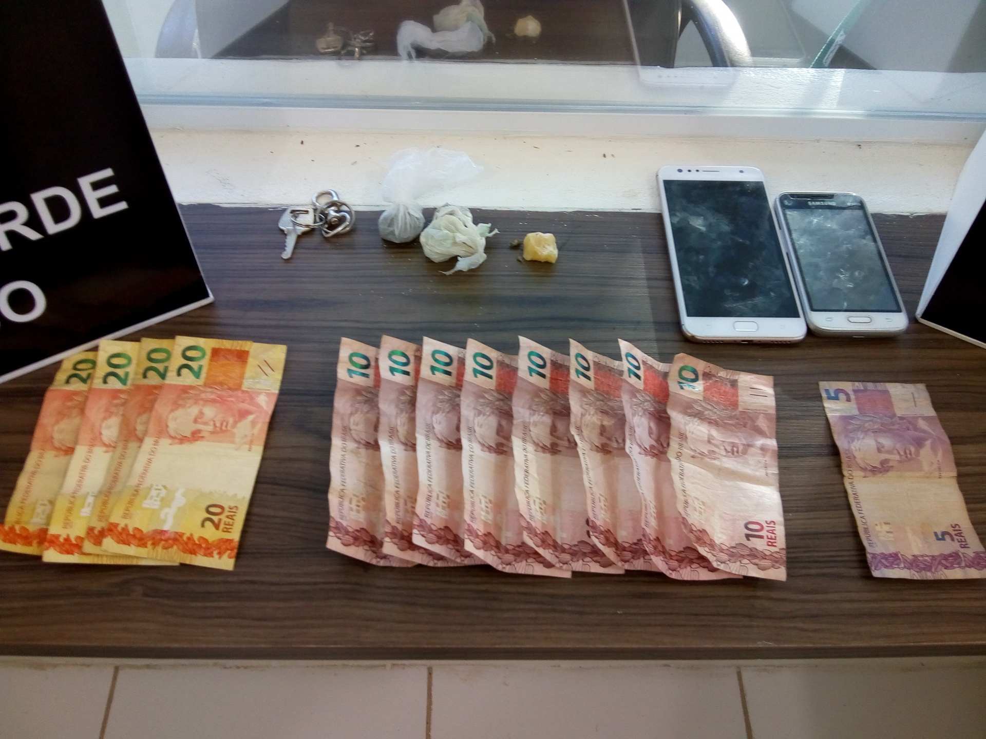 A Polícia Militar fazia rondas pelo bairro Rio Verde, na tarde desta segunda-feira (25), quando abordou um homem de 36 anos e um menor de 17 anos, em atitude suspeita. Durante revista foram localizadas porções de maconha, pasta base de cocaína, R$ 165,00 em dinheiro trocado e dois celulares.