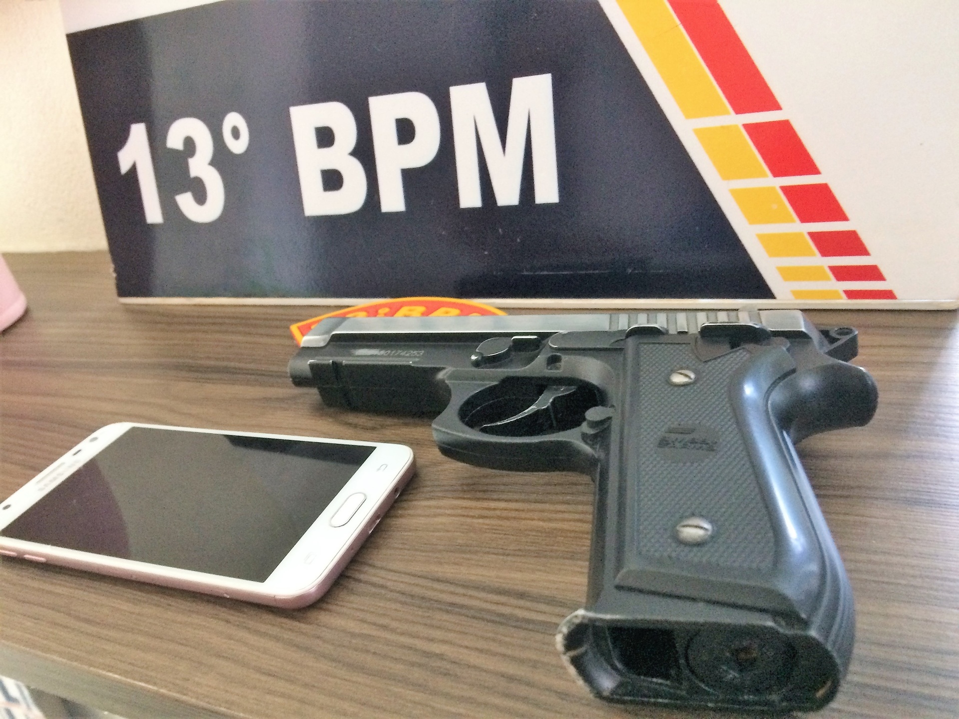Um menor de 17 anos e um rapaz de 19 anos, foram flagrados pela Polícia Militar na tarde de ontem (06), portando um simulacro de arma de fogo, muito semelhante a uma pistola de verdade, no bairro Cerrado.
