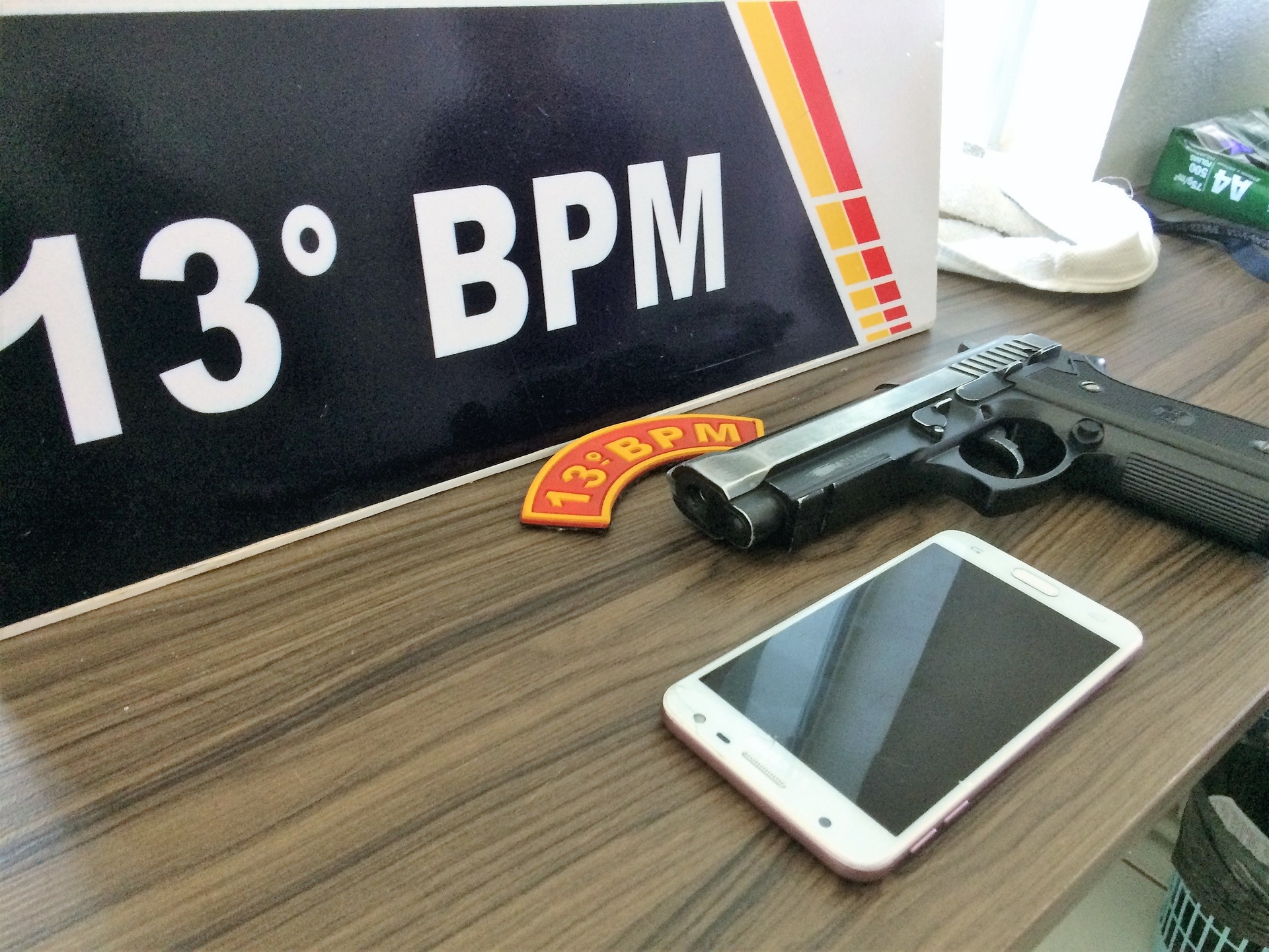 Ambos foram encaminhados para a Delegacia, juntamente com a motocicleta, o simulacro de arma de fogo e um aparelho de telefone celular. O rapaz maior de idade já tem passagens pela polícia.