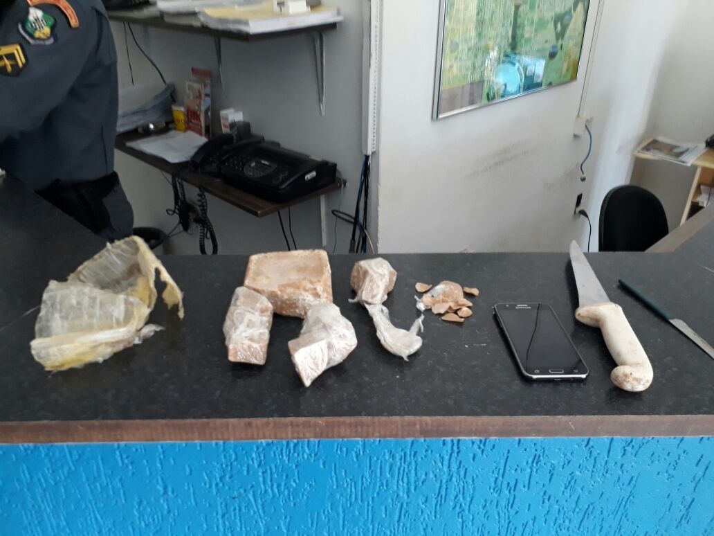 A interceptação policial aconteceu no loteamento Bom Jesus. A dupla estava fracionando um tablete do entorpecente, fazendo pequenas porções para revender.