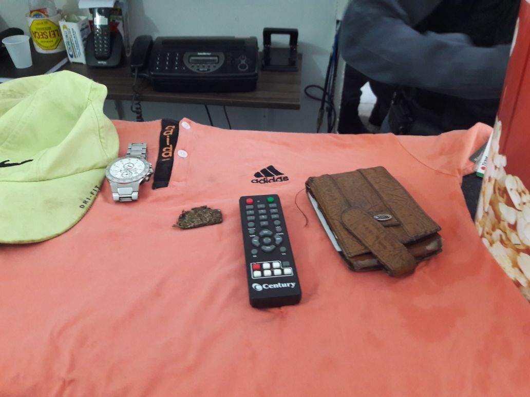 Todos os objetos foram colocados em um balde de pipoca que o criminoso carregava consigo.