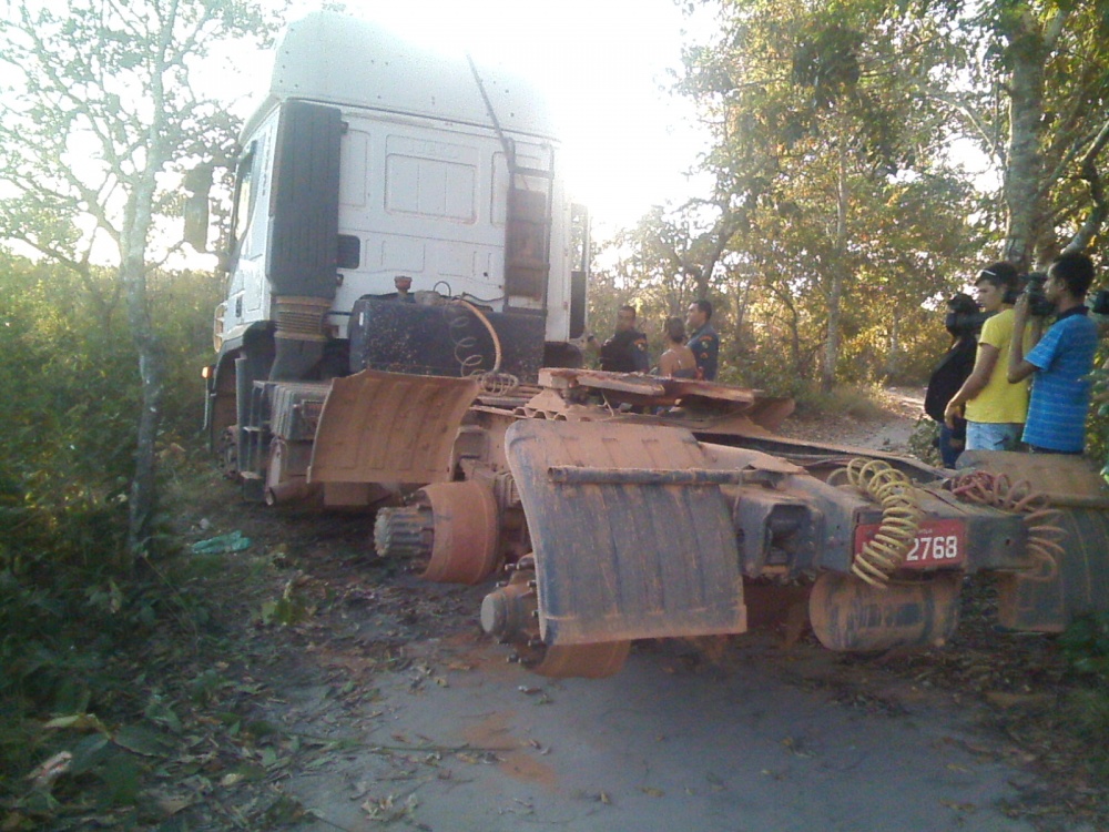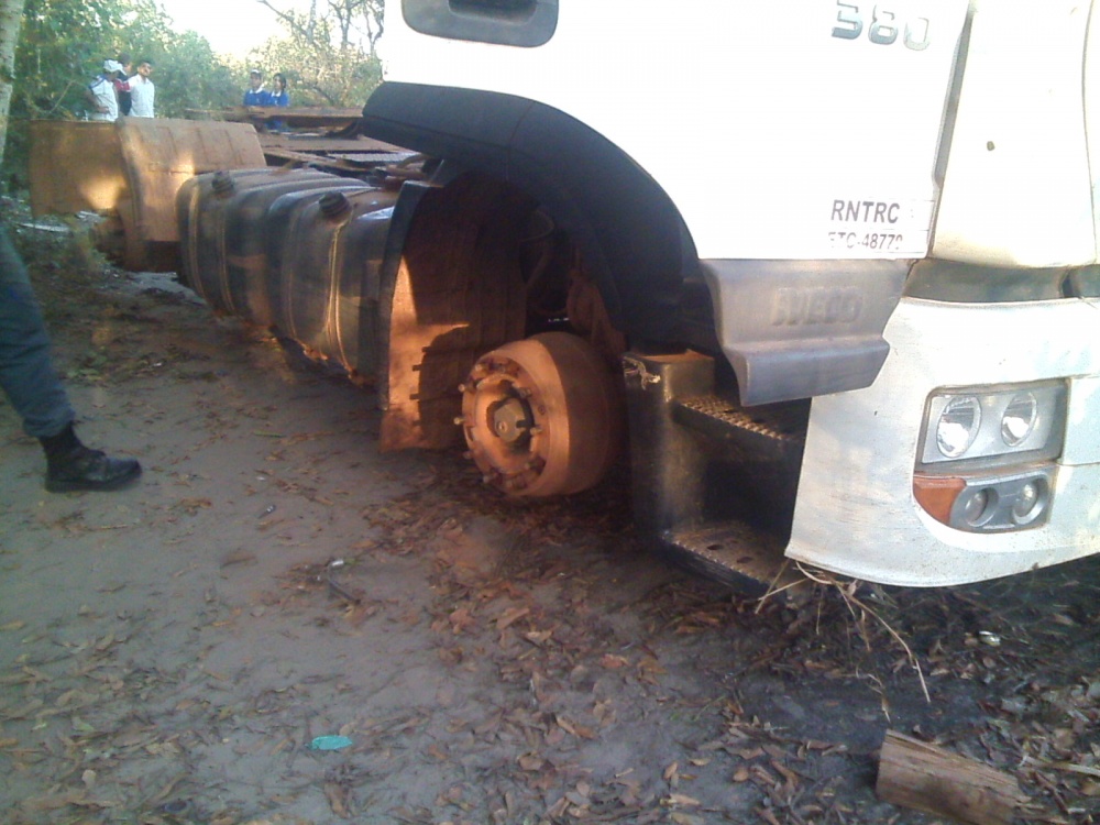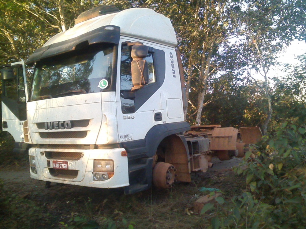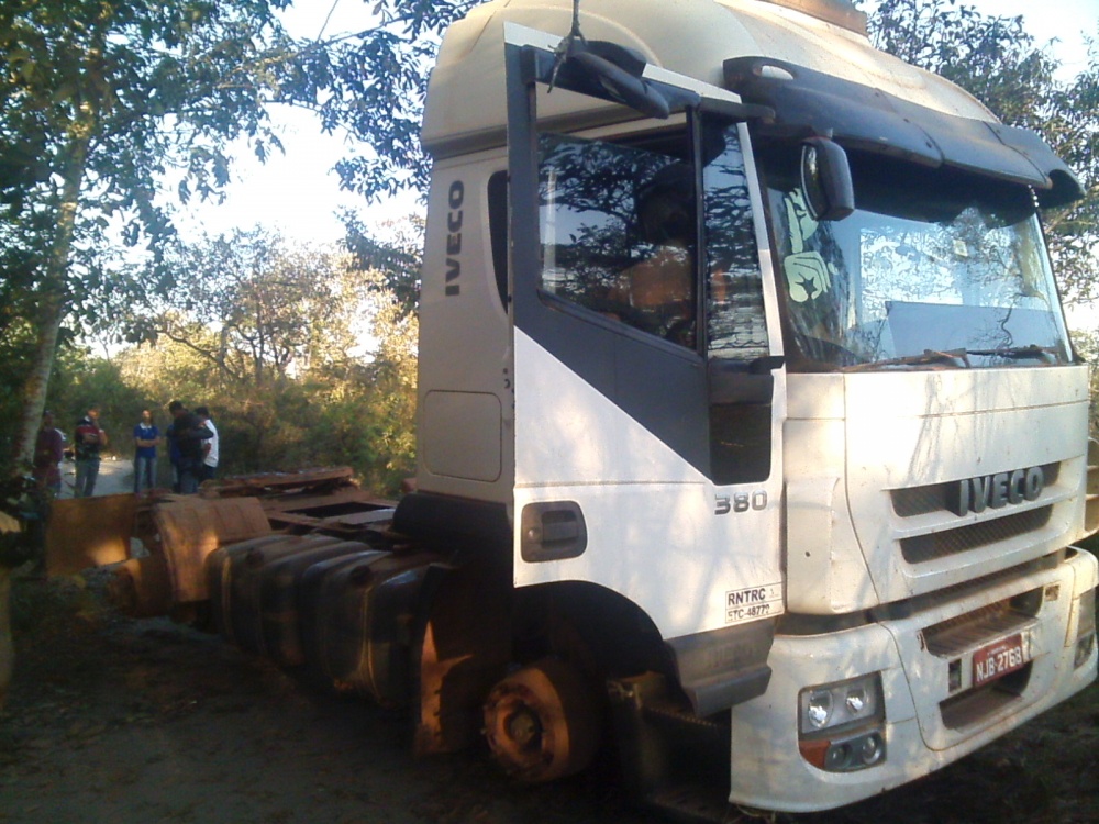O veículo estava totalmente depenado, sem os pneus. Os criminosos tiveram tempo ainda, de retirar todos os equipamentos eletrônicos do caminhão IVECO, de cor branca.