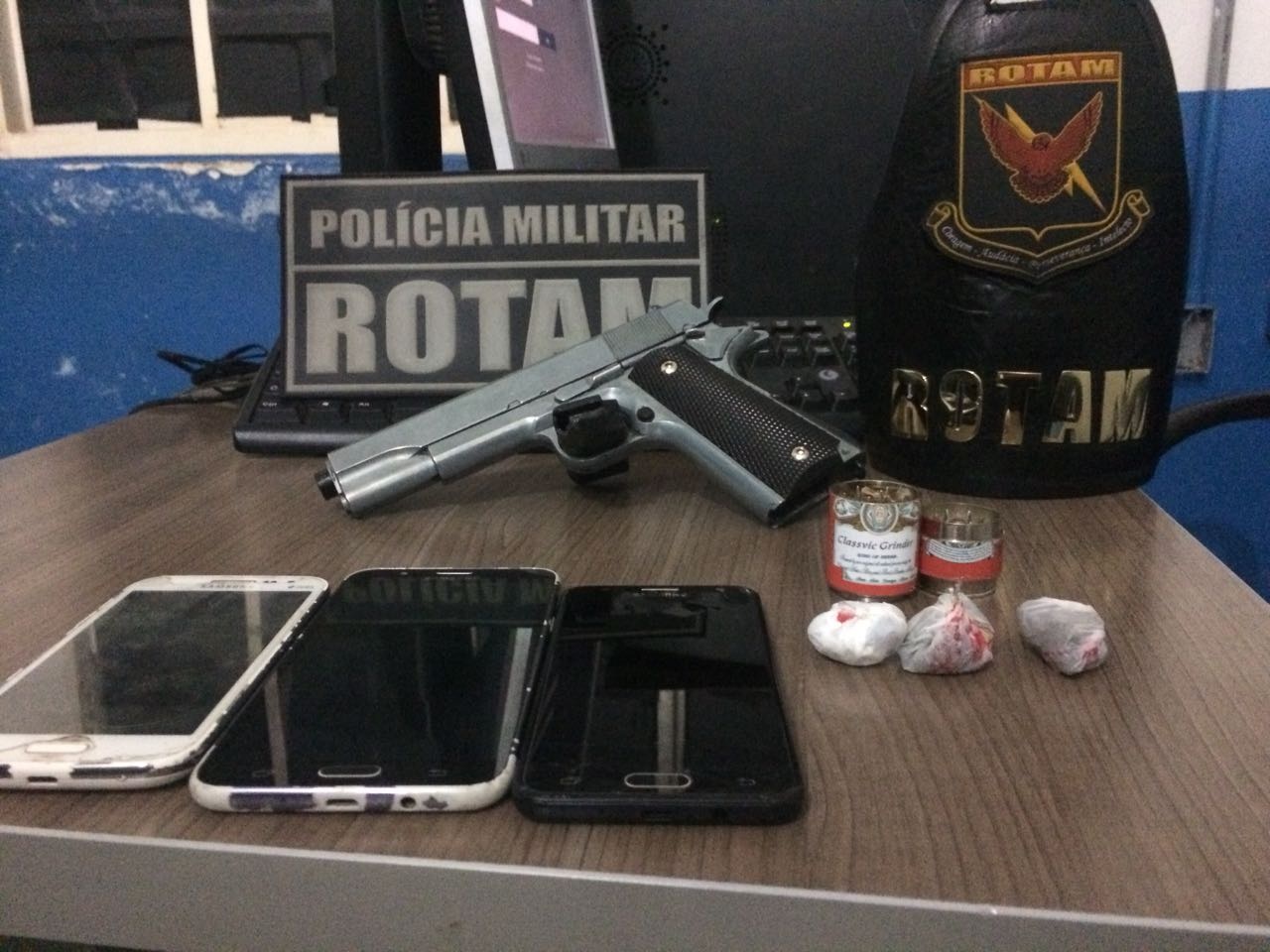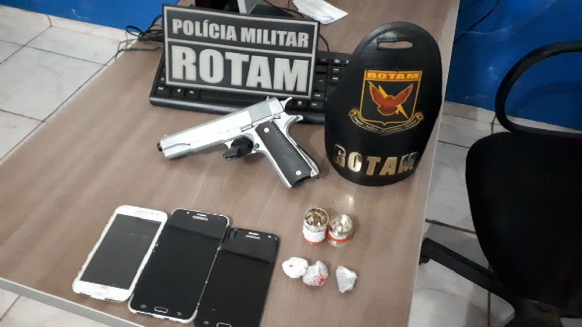 Equipe da Rotam prende três suspeitos de tráfico de drogas e com simulacro de arma de fogo