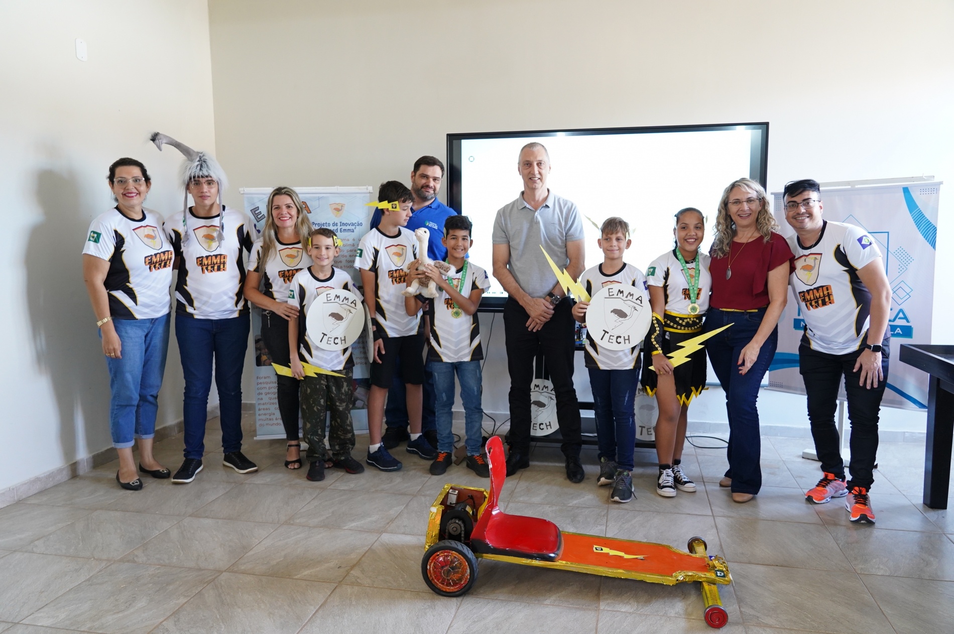 A equipe Emma Tech, nome alusivo à ave que representa a cidade e à tecnologia (ema), recebeu os convidados com cartões de visitas, de confecção própria, e todos uniformizados em vestimentas inspiradas em super-heróis de histórias em quadrinhos, compondo máscaras e escudos e uma espécie de chapéu de pelúcia em formato de ema.